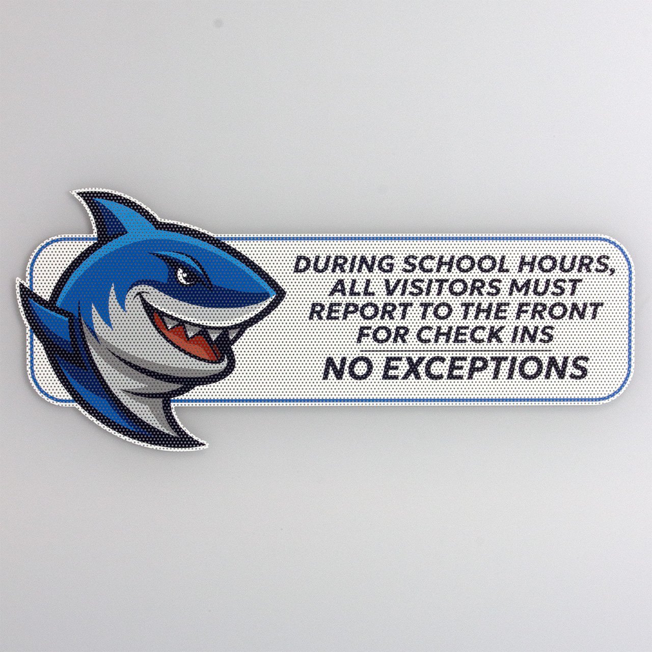 Enforce Visitor Policy with School Pride Secure the campus perimeter and clearly direct foot traffic with these visitor protocol banners. Exterior banners can feature the message: “DURING SCHOOL HOURS, ALL VISITORS MUST REPORT TO THE FRONT FOR CHECK INS – NO EXCEPTIONS,” this sign eliminates confusion and sets a firm boundary for campus safety.
