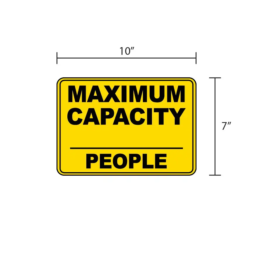 Designed for restaurants, event venues, and retail spaces, this 10″ x 7″ decal features high-contrast black text on a vibrant yellow background for immediate visibility. The clean layout includes a dedicated line to write in the specific number of people allowed, making it a versatile solution for any space regardless of size.
